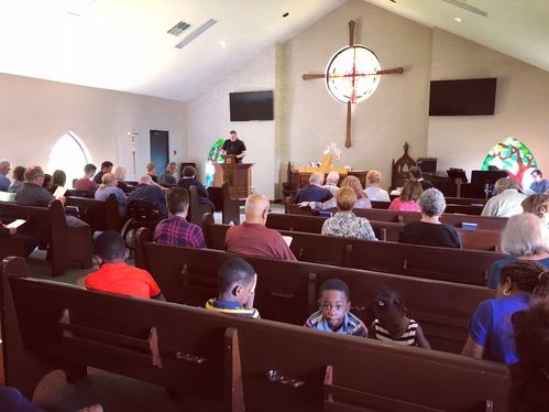 We sing, pray, confess, receive forgiveness, read the Bible, hear the gospel proclaimed, offer ourselves to the Lord, and receive communion. The service lasts about 70 minutes.
